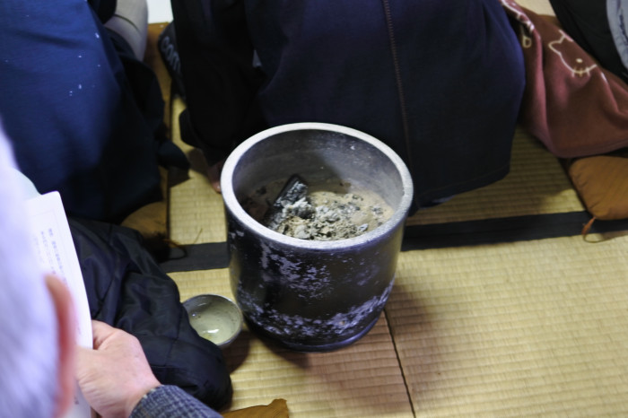 八坂神社の中の観客席では、初春の寒さをいたわってくれる火鉢が!